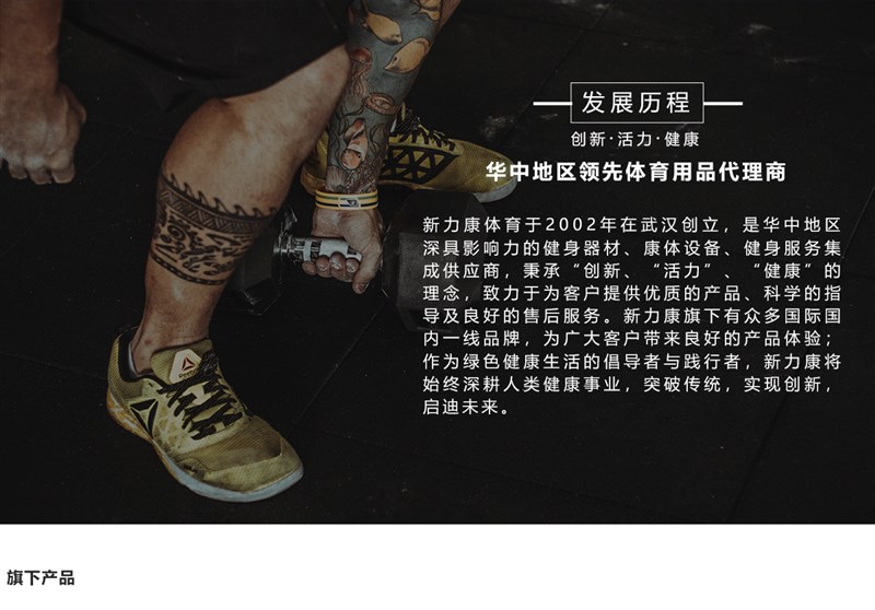 2002年,武漢新力康體育科技發(fā)展有限公司在武漢創(chuàng)立。公司秉承"誠信、品質(zhì)、服務(wù)"的理念,吸引、匯聚行業(yè)精英,共同發(fā)展,現(xiàn)已成長為華中地區(qū)商用客戶最多、自營網(wǎng)點(diǎn)最齊的的健身集成服務(wù)商,并成為眾多連鎖健身俱樂部和企事業(yè)指定供應(yīng)商。